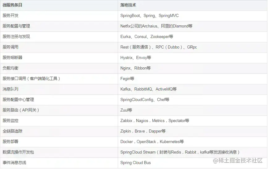 你所知道微服务的技术栈有哪些?列举一二