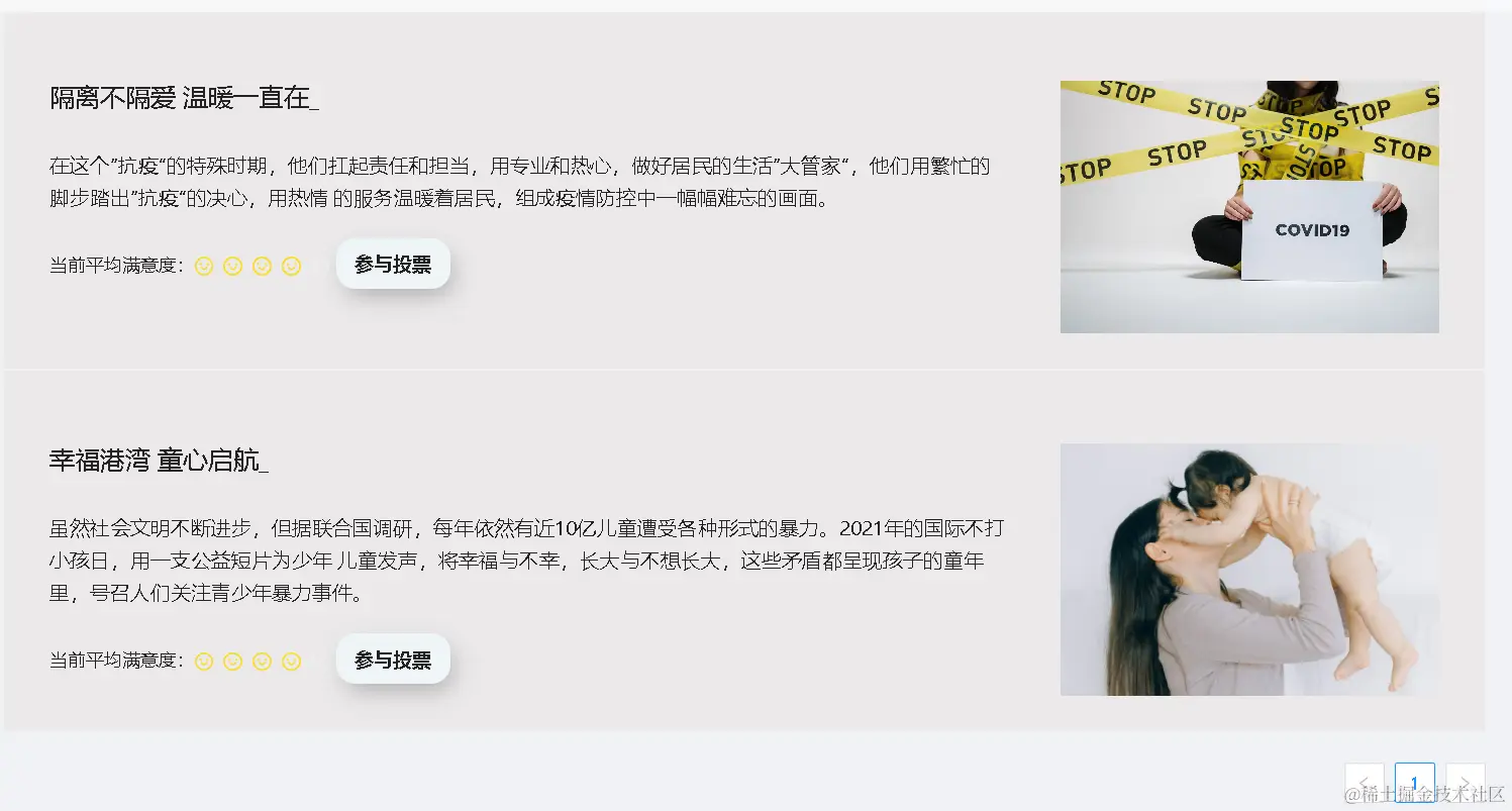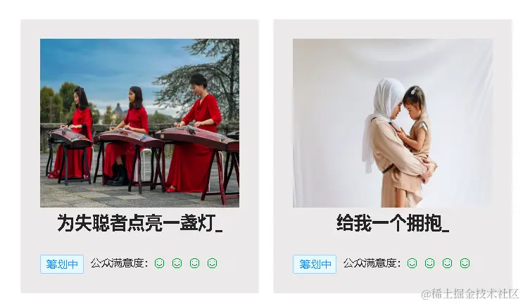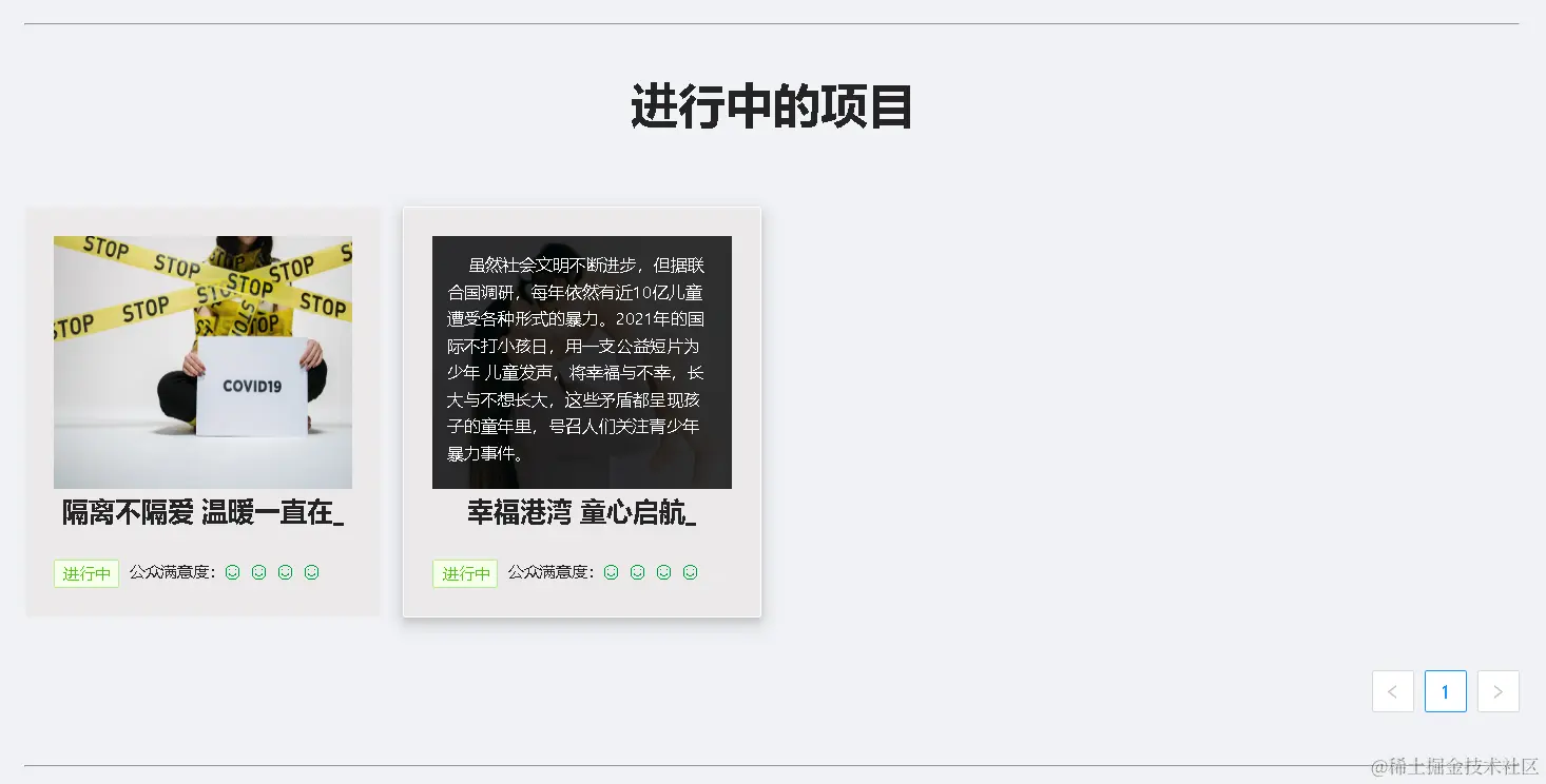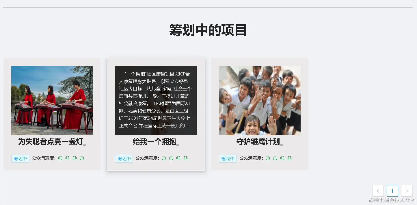 - 项目卡片上方是项目封面图片,下方是项目状态以及当前公众满意度