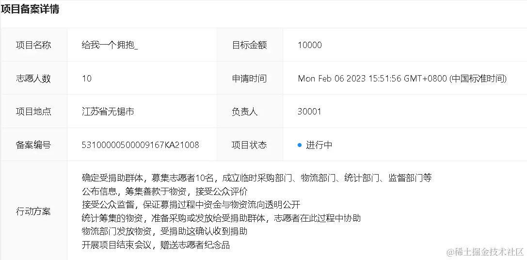 在本界面中,已登录的用户可以查看处于筹划中项目的详情,并且可以作为志愿者,申请参与到项目的执行工作中。