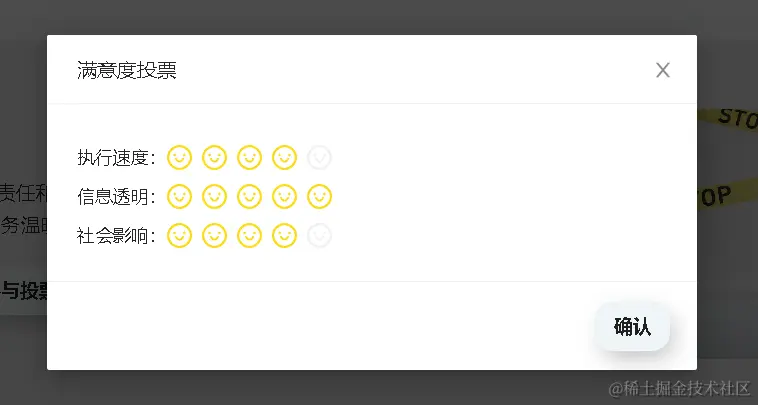 - 已登录的用户可以根据自己对项目的认知,从执行速度、信息透明、社会影响三个维度,对项目的满意程度进行合理评价。