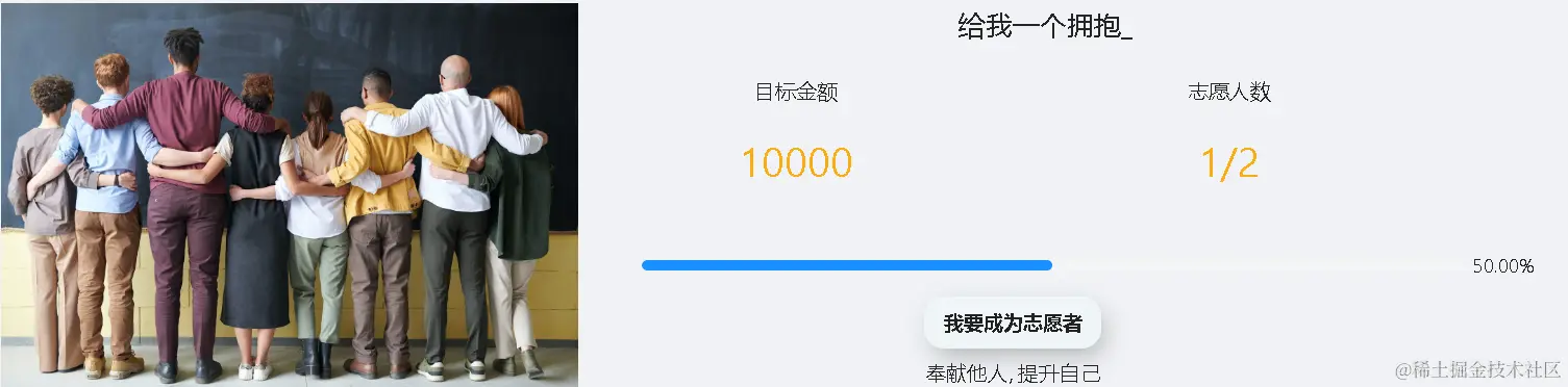 - 本版块展示了筹划中项目的目标金额和所需志愿者人数。已登录的用户可以点击成为志愿者按钮,填写相关信息并报名成为志愿者。