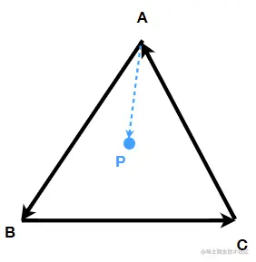 - 如下图,按顺序叉乘三次结果正负相同则在内部,否则在外部