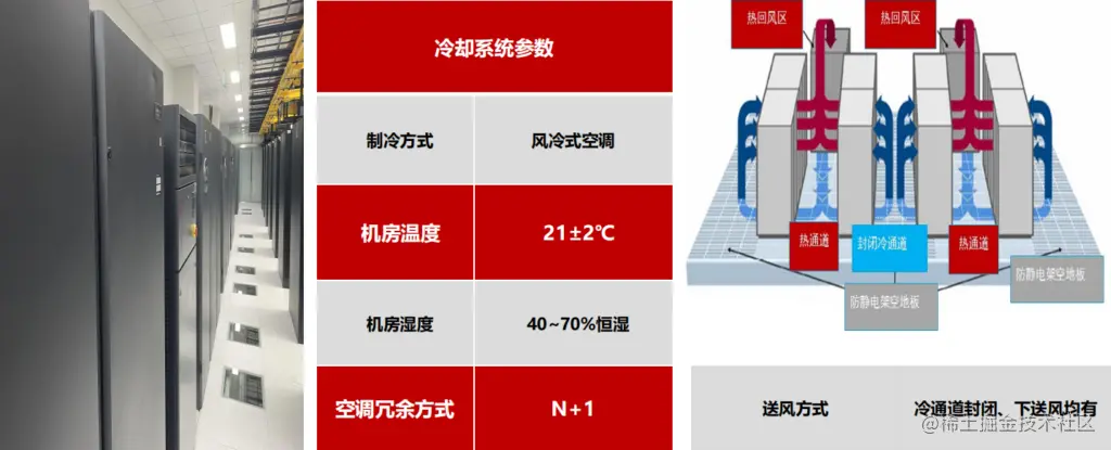 建筑抗震等级8级,层高5.5m,楼层载荷800 kg/㎡,防火系统为七氟丙烷气体灭火系统,运货电梯载重3000kg,双路市电引入。机架采用冷热分区,冷通道封闭,为标准42U及48U标准机柜