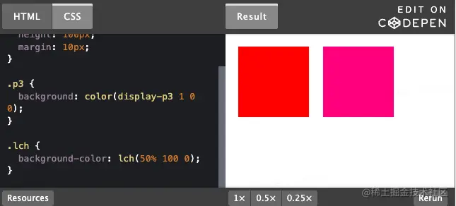 sRGB色彩空间,可以表示更明亮的颜色 LCH可以更好地模拟人类视觉系统