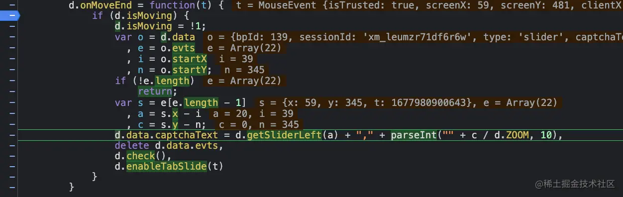 因此,在这里,我们需要弄明白的是captchaText这个参数是如何生成的,只要能逆向这个参数,就能拿下这个网站的滑块。下面我们开始分析。