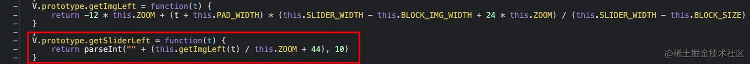 按照常规来说,直接传递 a 值和 c 值给网站后台即可通过滑块验证,但是网站前端在 getSliderLeft 方法中还对 a 值进行了一些额外的计算处理。