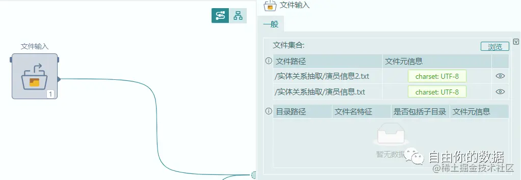 首先在平台中将需要处理的文件(text、word、pdf、excel等)导入平台中。这里我们还是利用文件输入算子来进行数据集的导入,可以支持多文件并行处理。