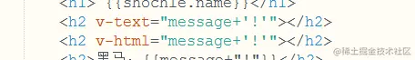 3.v-text,v-html。如图所示,v-text可以调用data中的数据对象,使其显示在双标签中,v-text属性绑定的数据对象会替换掉双标签中的所有内容。而v-html除了以上功能外还有将数据中HTML格式的语言解析为HTML标签的功能。