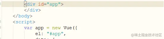 1.El挂载点,如图所示:使用vue的各种属性需要使他们放在具有挂载点的双标签下。Vue实例的作用范围在挂载点及其所有子类下。挂载点可以使用所有选择器绑定,但是推荐id选择器。挂载点可以放在body标签内的所有双标签上。