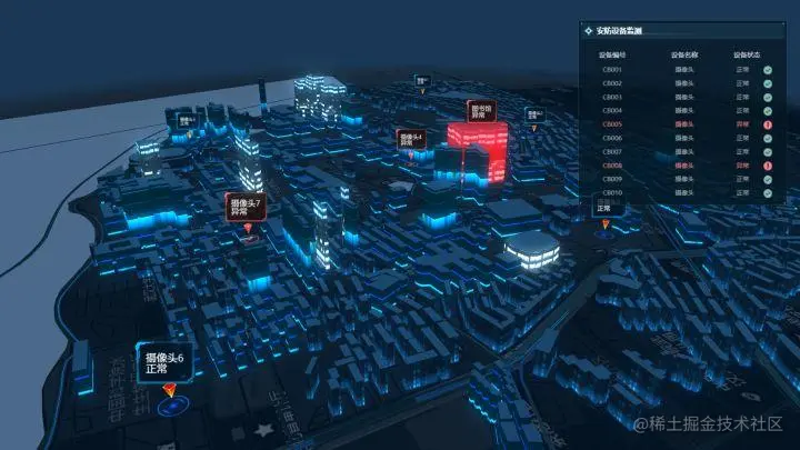 1)摄像头状态使用「点-数据图层」,当状态为异常时,点及标签显示为红色。