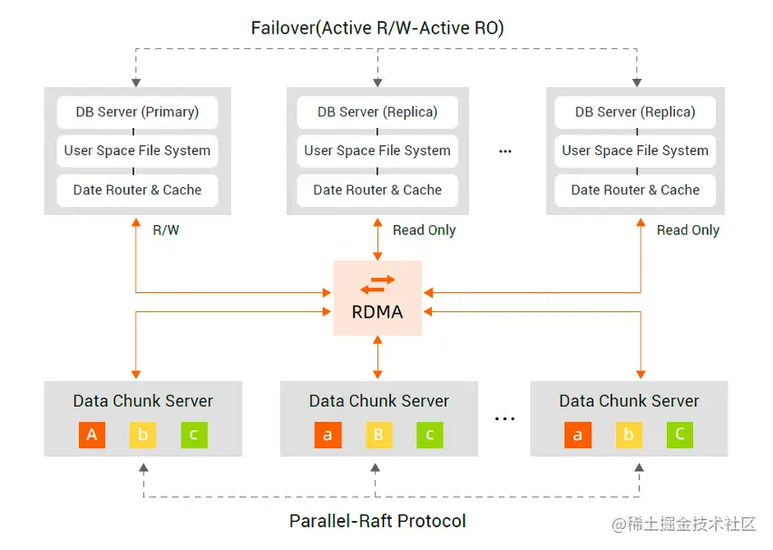 代表产品OceanBase、TiDB,该形态数据库通过天然的多副本设计+Paxos/Raft分布式选举协议实现分布式。