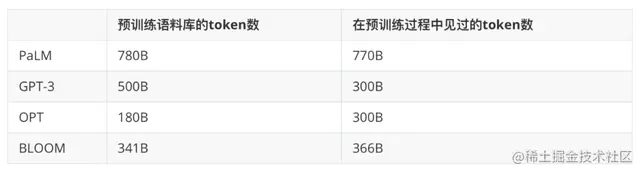 4. 训练过程:如下表所示,原始的 GPT-3 预训练过程见过的 token 数与 OPT 和 BLOOM 接近,而 PaLM 则远远超过了它们。同样,PaLM 和 GPT-3 预训练语料库都大于 BLOOM 和 OPT。因此,在更多的 token 上、用更大规模的高质量语料库进行预训练可能是 GPT-3 和 PaLM 成功的一个重要因素。