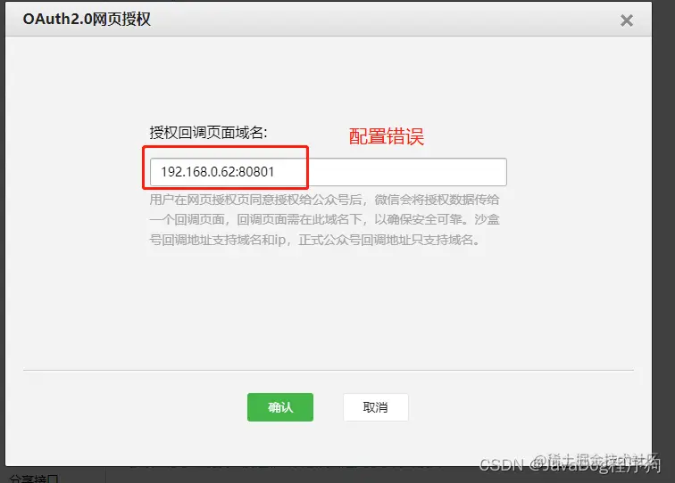 微信中【OAuth2.0网页授权】-授权回调页面域名配置错误
