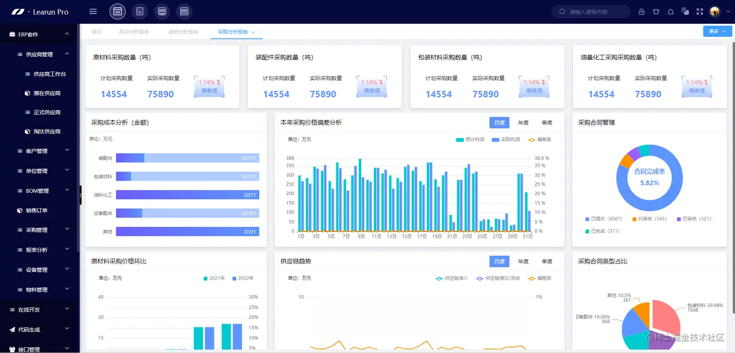 在此基础上,LeaRun最新推出了ERP套件,这是一系列企业商务套件和解决方案的组合,针对性地从企业管理的多个维度去解决企业运营中的难题,最终让企业达到直接快速地提高经济效益的目的。这些方案套件运行于LeaRun低代码开发平台之上,但又顺应了成长型企业的规模和需求,从而为成长型企业提供更高效的工具和基于内存计算的实时洞察力。