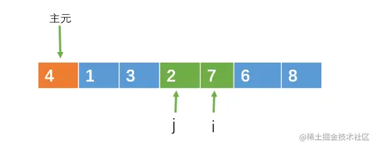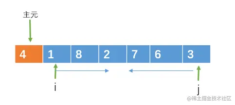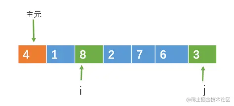 首先选一个主元,可以是第一个元素为主元,也可以最后一个元素为主元。假设数组arr的范围为[left, right],即起始下标为left,末尾下标为right。源数组如下