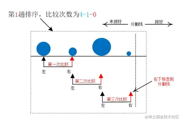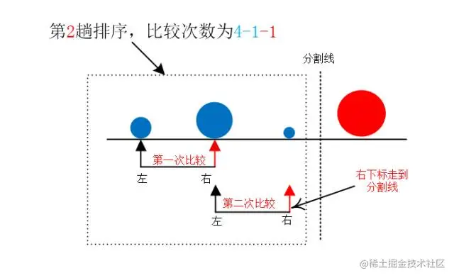 第二层就是控制第 i+1趟(因为i从0开始)所比较的次数,第 i +1 趟比较了 N - 1 -i 次”。
