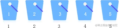 - 准备 5 个桶,从 1~5 对它们进行编号;