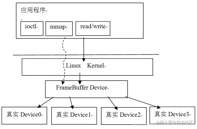 从上图中可以看出,应用层通过标准的ioctl或mmap等系统调用,就可以操作显示设备,用起来非常方便。这里,把mmap的调用列出来,相信大部分读者都知道它的作用了。