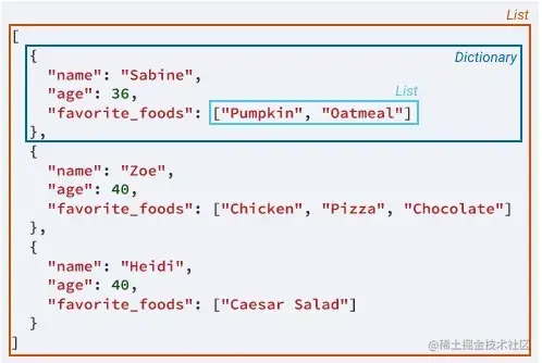 JSON很像Python的列表、字典、字符串和整数,我们可以将JSON视为字符串表示这些对象的组合。