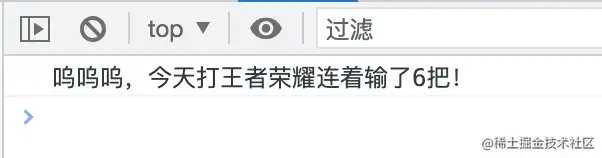 console.log("呜呜呜,今天打王者荣耀连着输了6把!");