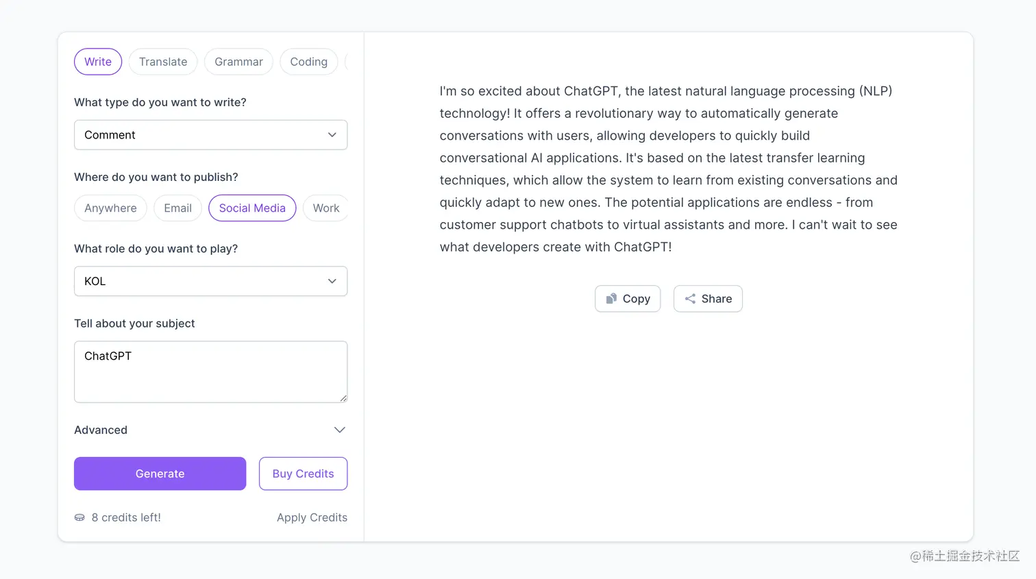 开发者 @lvwzhen,上次推荐他们做的 Teach Anything 做的很不错,用户可以任意组合就能生成各种文章、报告、清单、计划等。另外还在开发模板功能,ChatGPT 3.5 上线之后反应也很迅速,产品非常简单好用。