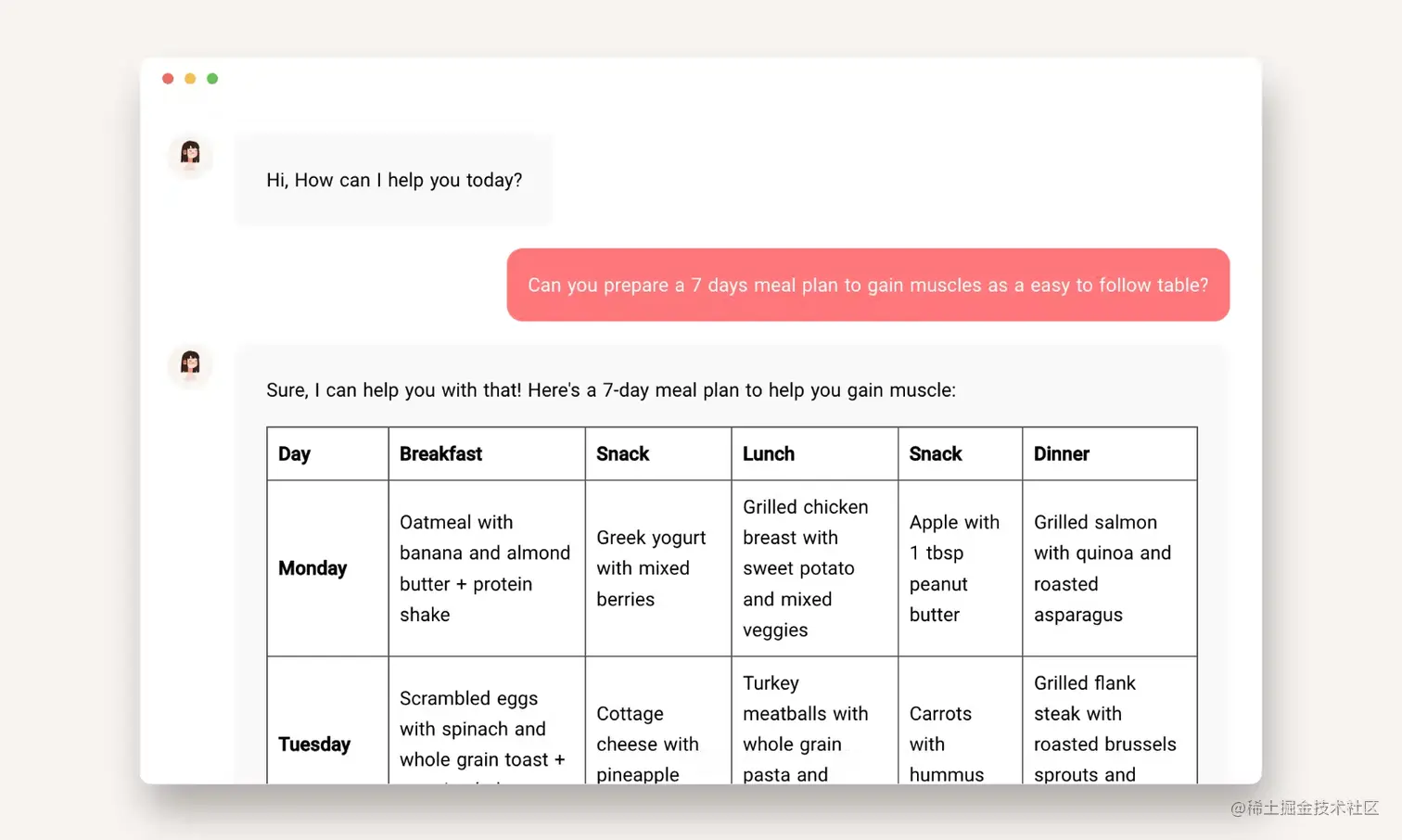 这个网站基于 ChatGPT 提供免费的个人健身和营养教练服务,随时随地向她咨询有关健身和营养的问题,无需登录或安装应用程序。另外一个付费的产品 MikeAl 做的功能更多,分了膳食计划,锻炼计划。健身计划这个方向也 ChatGPT 了。