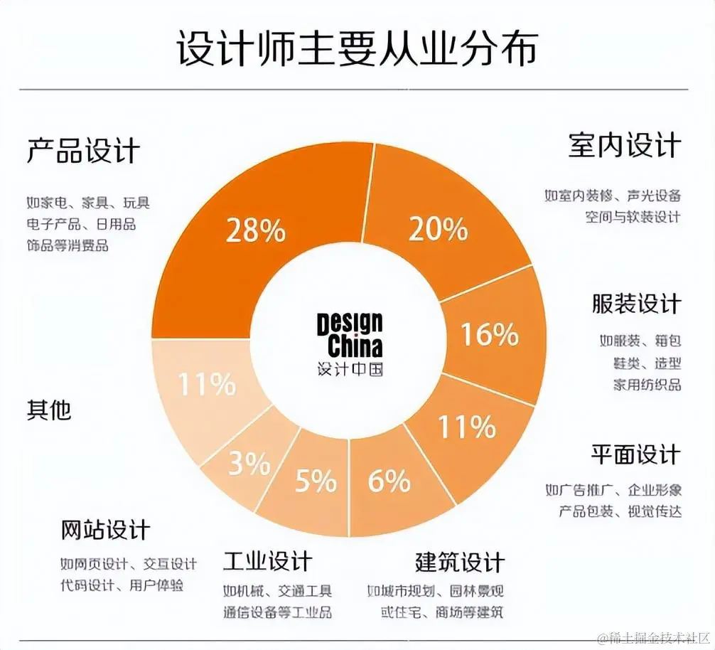 第六名是工业设计师,占比5%,拥有85万人。如机械,交互工具,通信设备等都是属于工业设计师的行业。