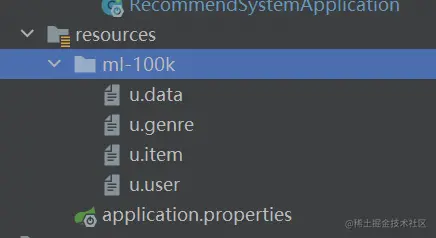 3.项目中用到的文件数据集ml-100k 在 src / main / resources目录下