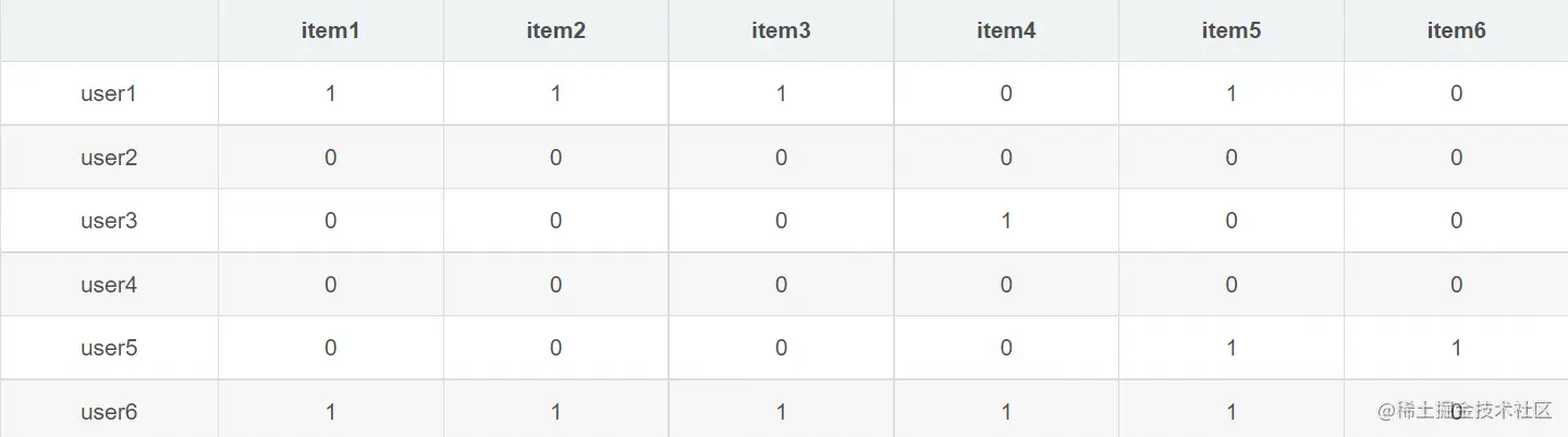 表中数据0代表用户没有商品打分,1代表用户对商品打分了 想要计算物品相似度矩阵,则两个物品的向量需要满足至少同一行有2个1才能计算,即使有,如果行数过少,得出来得数据就不可靠。 因而ItemCF算法使用与电商平台等User数量远大于Item数量得应用场景