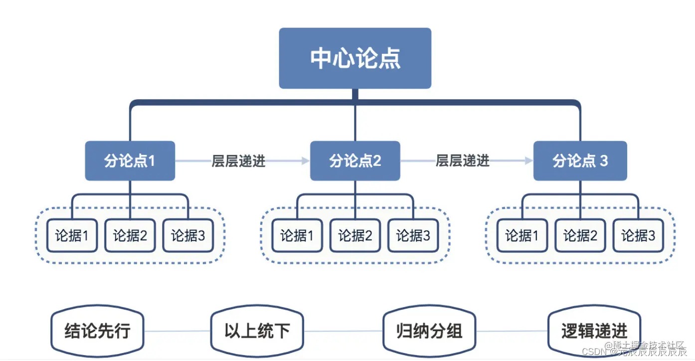 结论先行,以上统下,归类分组,逻辑递进。先重要后次要,先总结后具体,先框架后细节,先结论后原因,先结果后过程,先论点后论据。