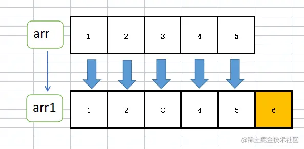 arr1[i] = arr[i]; //将原数组长度部分 依次拷贝