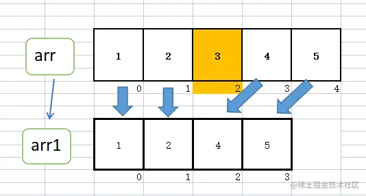 arr1[i] = arr[i + 1]; //新数组下标i拷贝原数组的下标i+1
