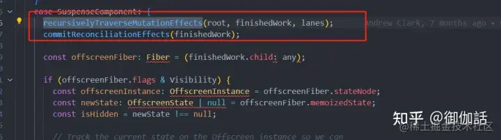 commit 阶段主要就是为 primary 组件的加载增添回调函数事件,遍历 Suspense 组件的 updateQueue 中的 weakable,等待加载 weakable 加载完毕后触发回调函数,设置 Suspense 组件下次更新 commitMutationEffectsOnFiber 方法对于 Suspense 组件的主体逻辑如下:
