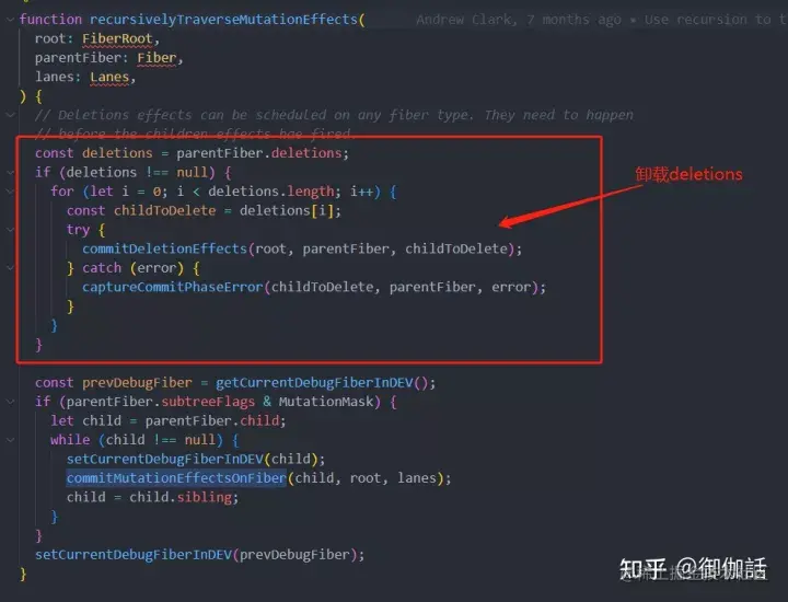 其中的核心逻辑之一是获取节点上的 deletions 数组,并逐个卸载: