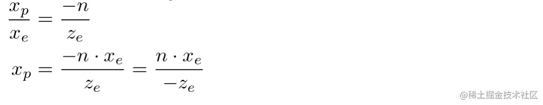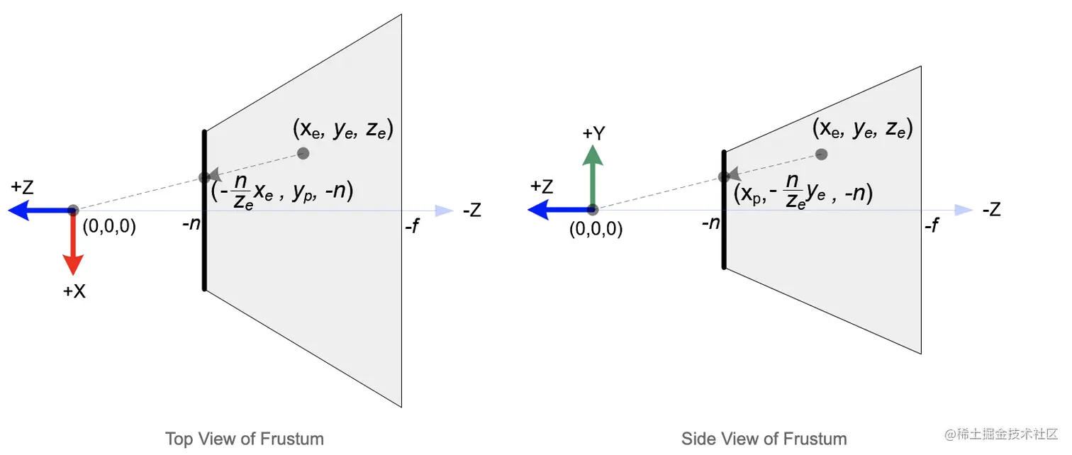 下图展示eye space中的点 投影到近平面的坐标为