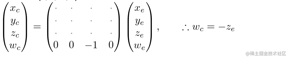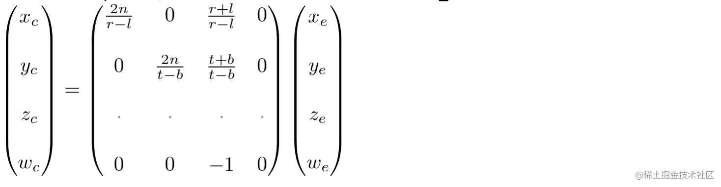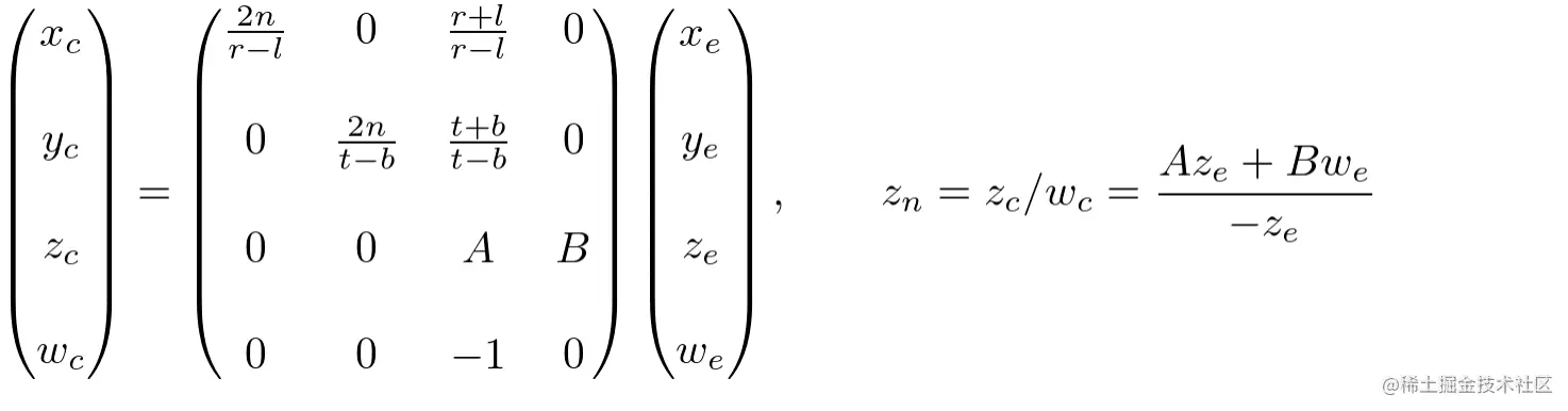 前面已经设,所以括号内的项就是clip空间的坐标,则可得到投影矩阵的第一行和第二行
