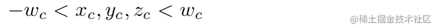 opengl管线会根据clip坐标进行剪裁,在camera视锥范围外的顶点会被丢弃,判断计算: