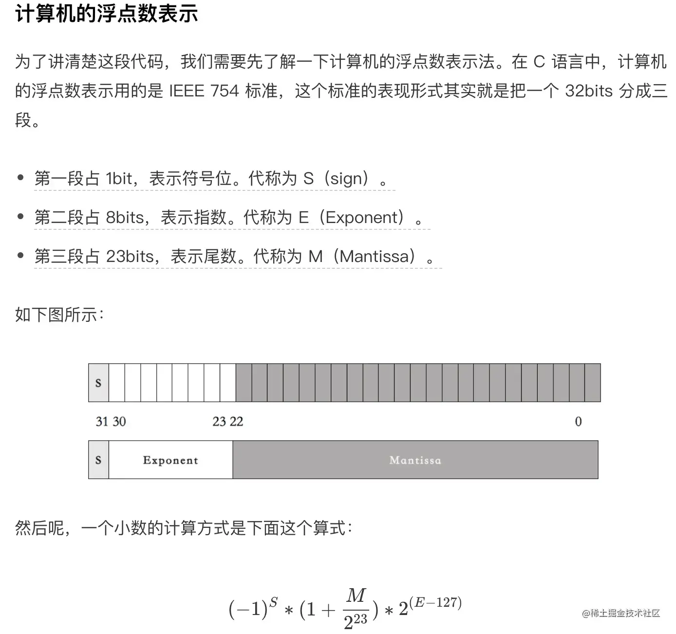 符号位决定了一个数的正负,指数部分决定了数值的大小,小数部分决定了数值的精度。