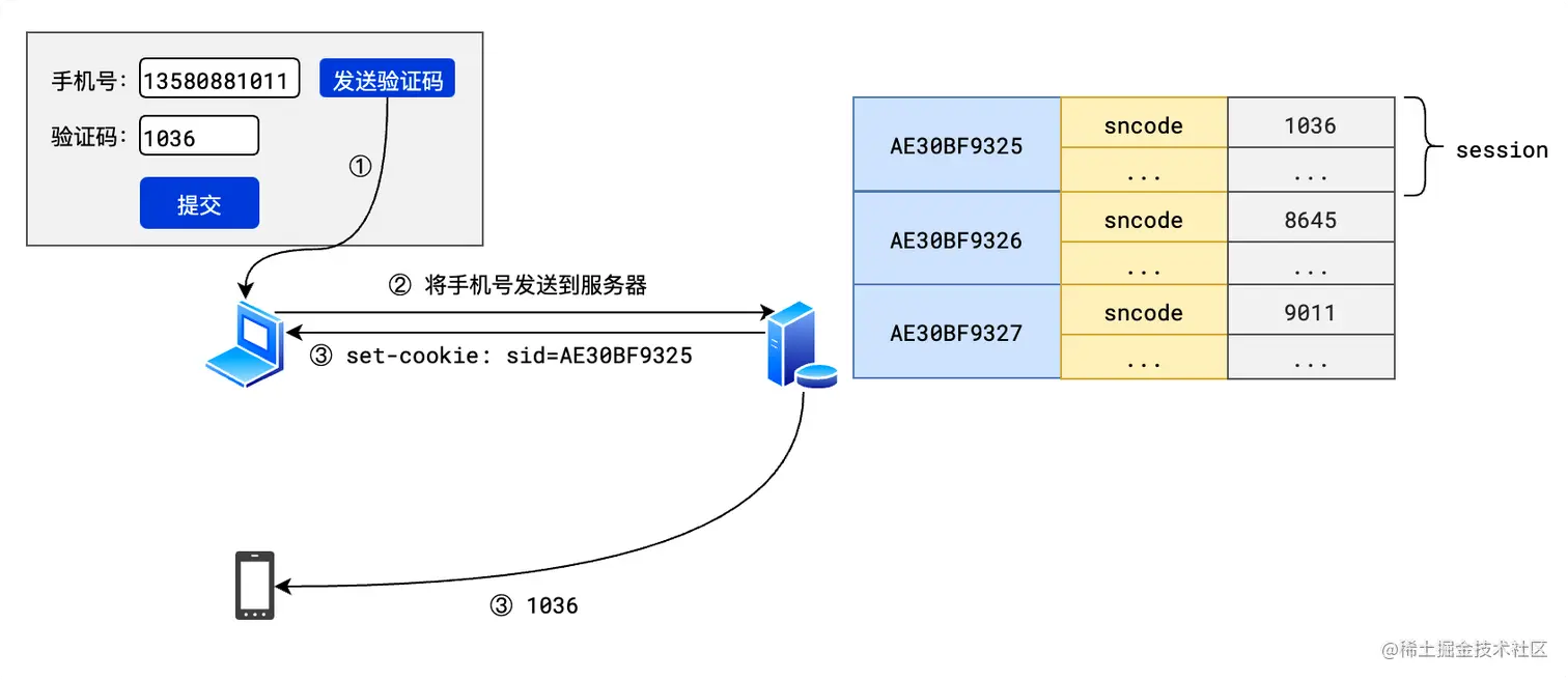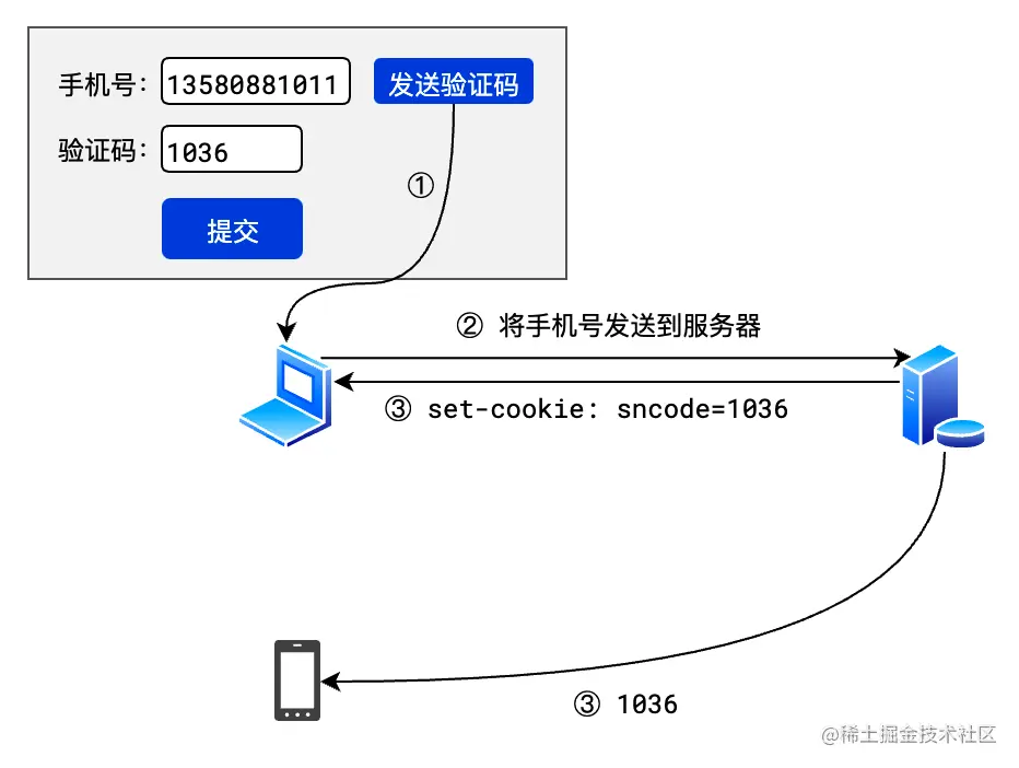 如果这样做,客户端可以随便填写一个别人的手机号,然后从 cookie 中获取到验证码,从而绕开整个验证。