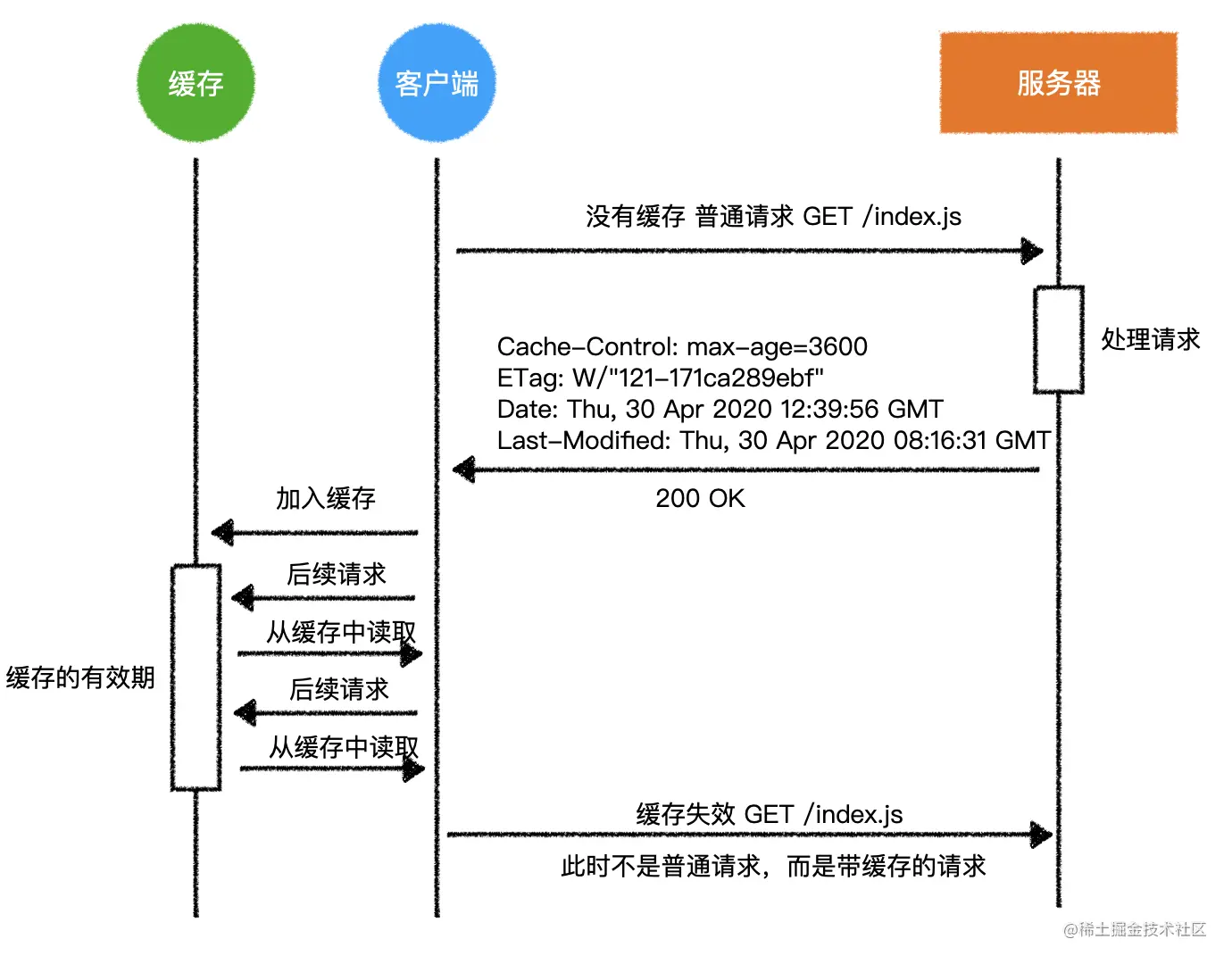当客户端收拾好行李,准备再次请求GET /index.js时,它突然想起了一件事:我需要的东西在不在缓存里呢?