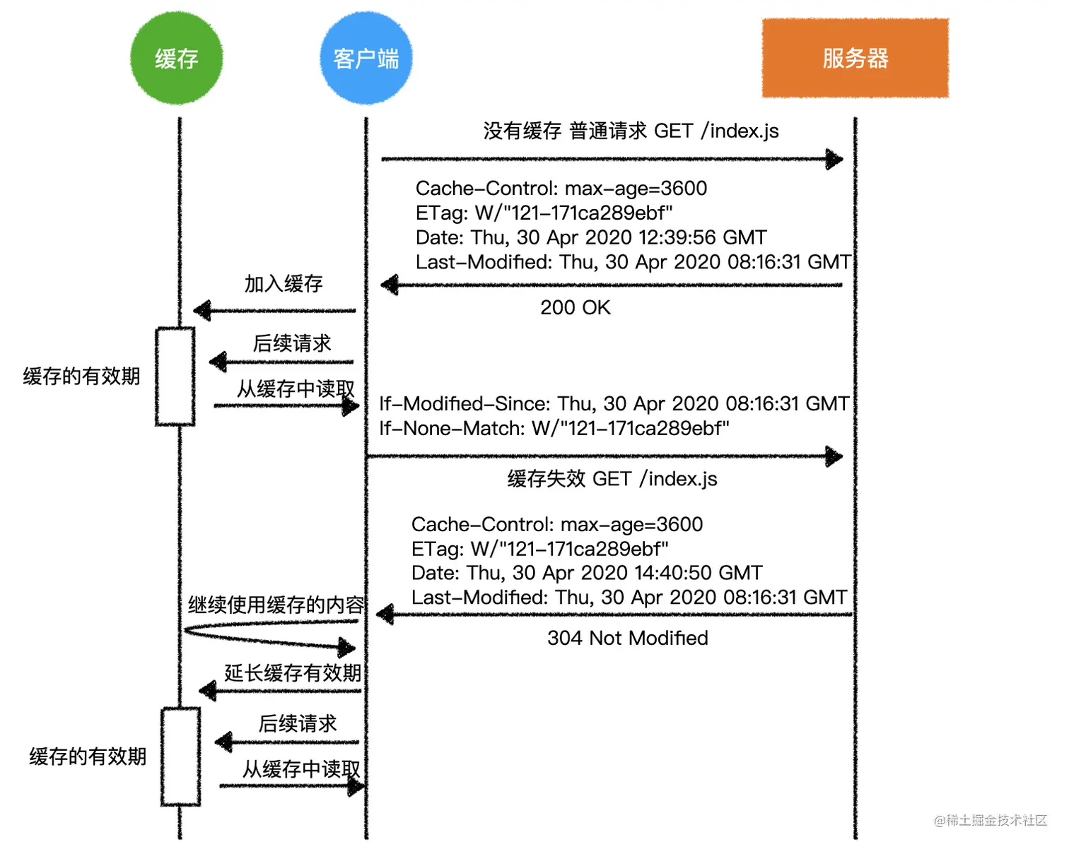 这样一来,就相当于告诉客户端:「你的缓存资源仍然可用,我给你一个新的缓存时间,你那边更新一下就可以了」