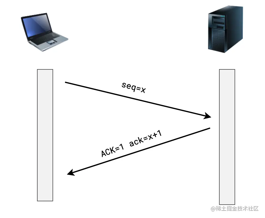 第二次握手:服务器收到 syn 包,然后回应给客户端一个 SYN+ACK 包,此时服务器进入 SYN_RCVD 状态。此次握手的含义是服务端回应客户端,表示已收到并同意客户端的连接请求。
