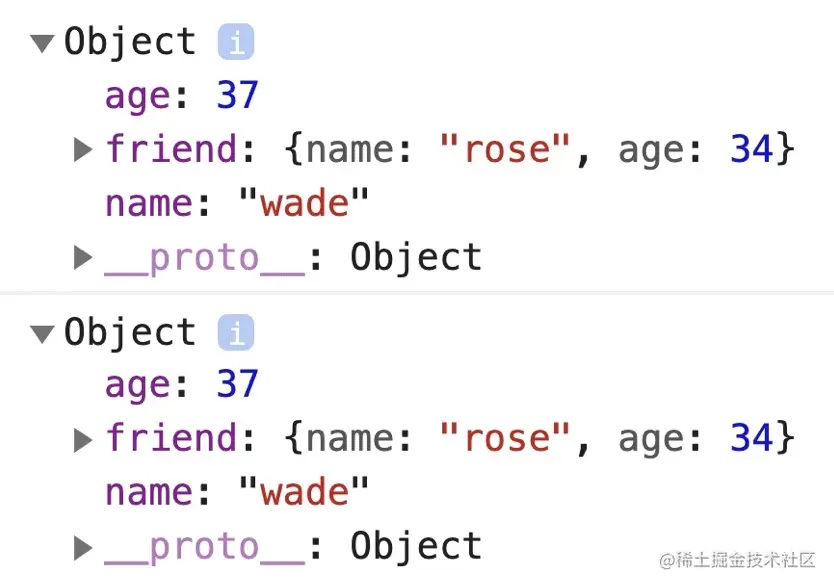 但是和 Object.assign 方法一样,如果对象中某个属性对应的值为引用类型,那么直接拷贝的是引用地址。如下: