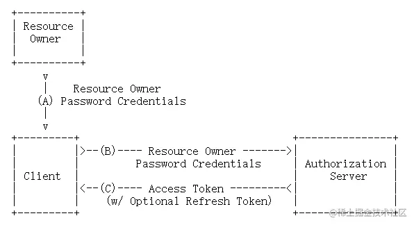 (B)Client携带资源拥有者凭证向token端点直接请求access token。请求时,Client要与授权服务器进行认证。