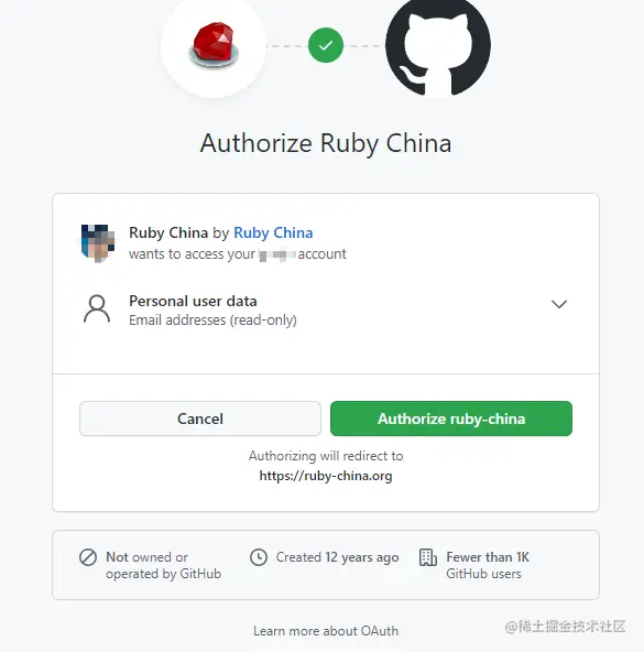 上图GitHub按钮就是Client引导资源拥有者的方式,鼠标放上去时,浏览器坐下角的地址为