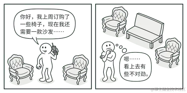 你需要设法单独生成每件家具对象, 这样才能确保其风格一致。 如果顾客收到的家具风格不一样, 他们可不会开心。