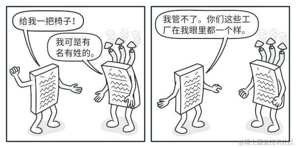 假设客户端想要工厂创建一把椅子。 客户端无需了解工厂类, 也不用管工厂类创建出的椅子类型。 无论是现代风格, 还是维多利亚风格的椅子, 对于客户端来说没有分别, 它只需调用抽象 椅子接口就可以了。 这样一来, 客户端只需知道椅子以某种方式实现了 sitOn坐下方法就足够了。 此外, 无论工厂返回的是何种椅子变体, 它都会和由同一工厂对象创建的沙发或咖啡桌风格一致。