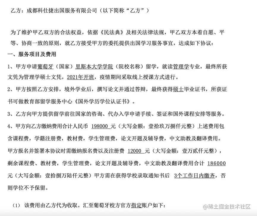 根据李华与科仕捷签订的服务合同,学员申请葡萄牙里斯本大学学院留学,就读管理学专业,最终所获文凭为管理学硕士文凭,2021年开班,疫情期间采取线上授课方式进行。