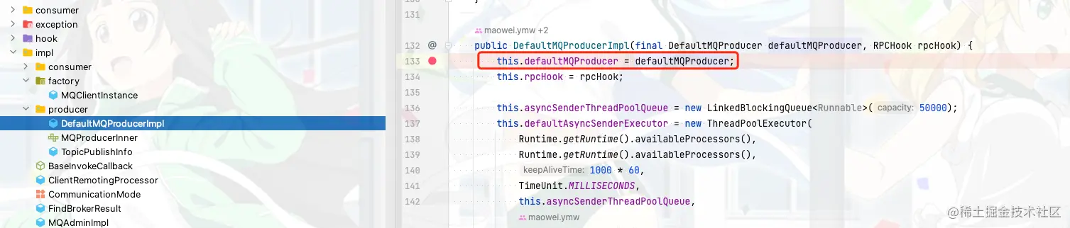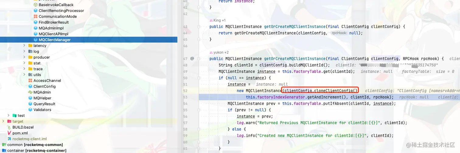 但是这里的clientConfig就是DefaultMQProducer,我们可以通过debug的方式去确认