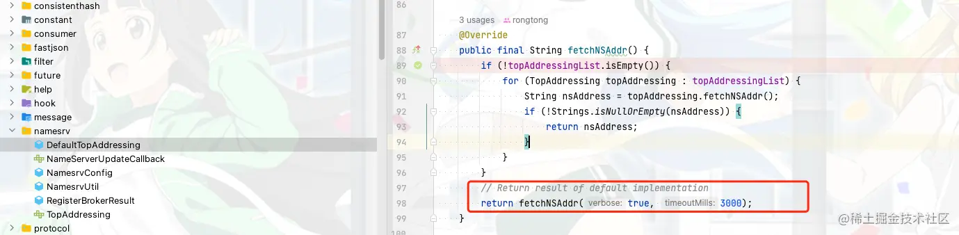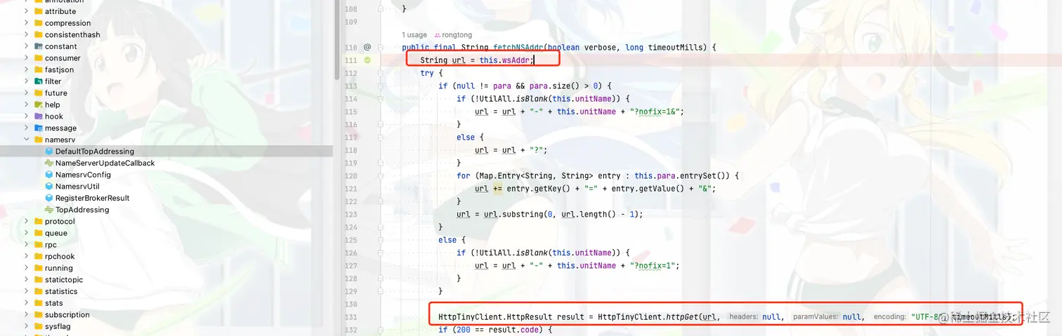 进到方法fetchNameServerAddr里面我们会发现是通过TopAddressing类的fetchNSAddr方法